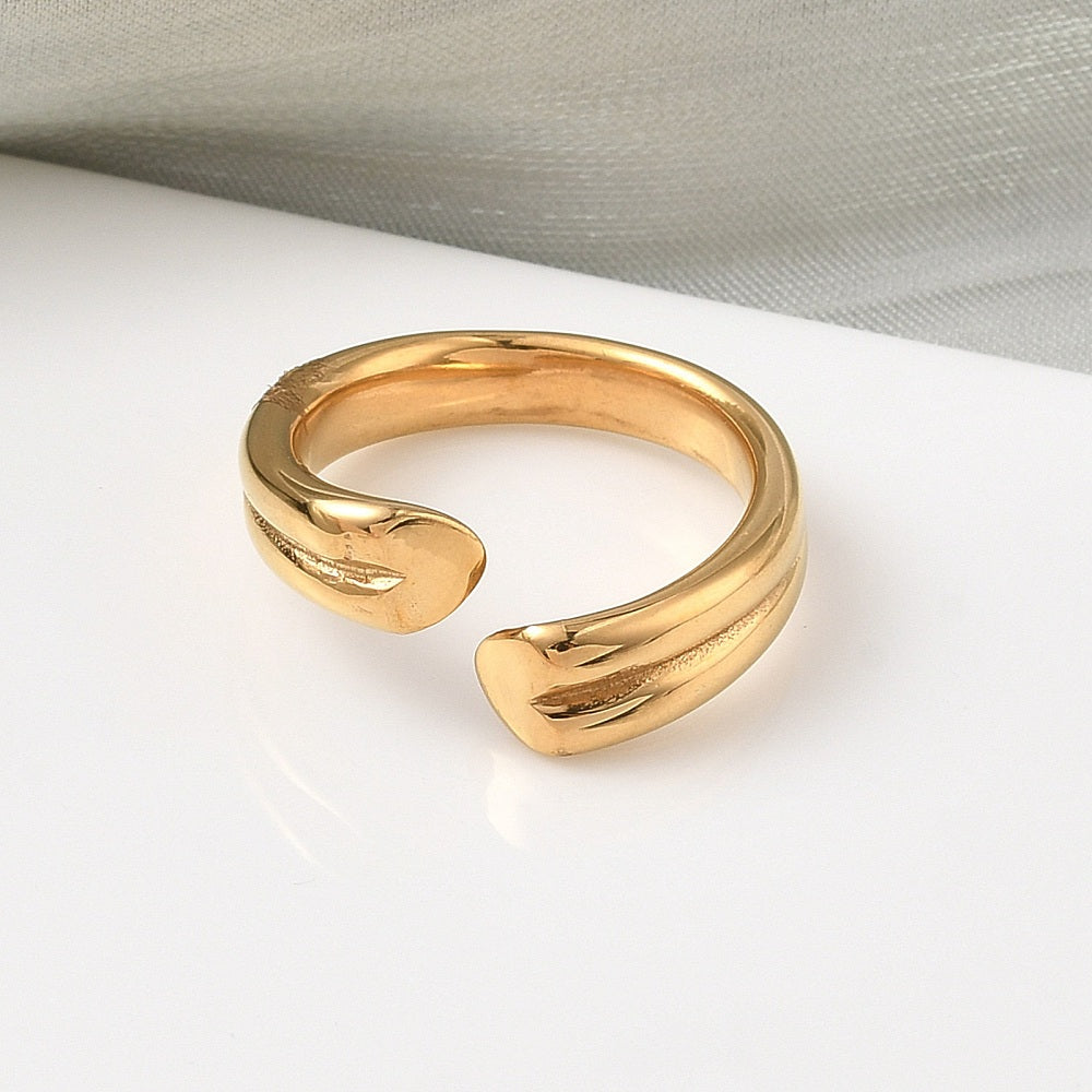 Σχεδιασμένο με απαλά στρογγυλεμένες άκρες και γυαλισμένη επιφάνεια, αυτό το δαχτυλίδι περιχειρίδας αγκαλιάζει το δάχτυλο με μια καθαρή, γλυπτική αίσθηση. Ο ανοιχτός σχεδιασμός επιτρέπει διακριτική ρύθμιση διατηρώντας παράλληλα το σχήμα του, καθιστώντας το ένα εκλεπτυσμένο καθημερινό κομμάτι που προσθέτει αισθητική χωρίς υπερβολές. Ήρεμο, μοντέρνο και προσεγμένο.