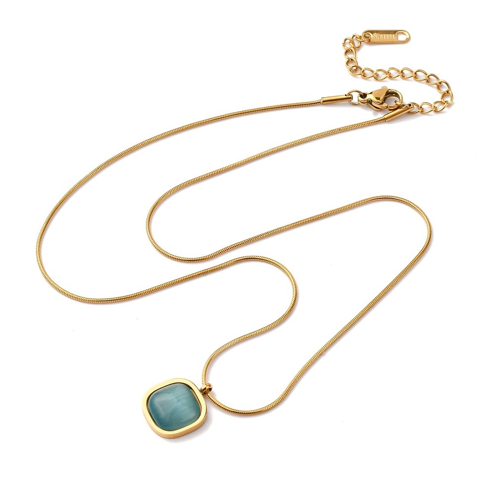 Κολιέ με Τετράγωνο Μενταγιόν & Τιρκουάζ Ρητίνη